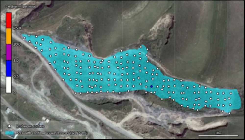 Figure 2: Surface methane emissions measurement in Lot 2 of the Samsun landfill.